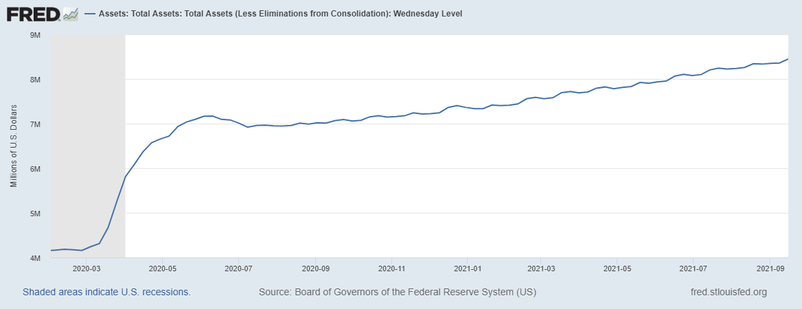 As discussed earlier, central banks across the globe have undertaken monetary policies to fence off the pandemic woes and boost economic recovery. Last June, the Fed announced the purchase of large-scale bonds worth at least $120 billion each month until further notice. The Fed balance sheet has now ballooned to more than $8 trillion: